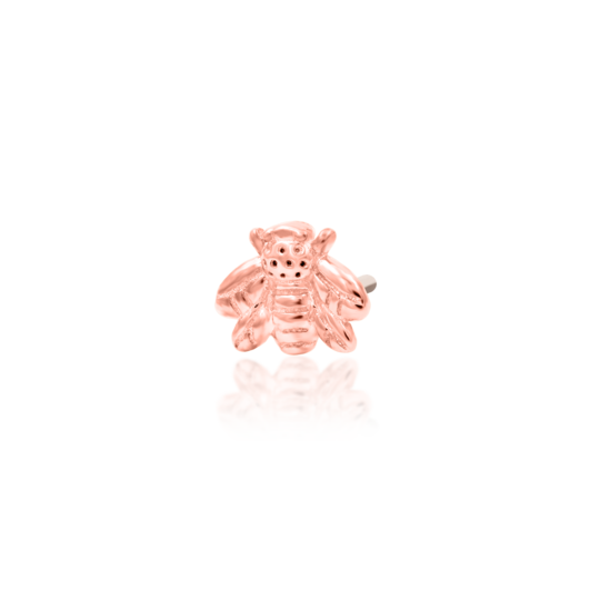 Mini-Bee threadless end in 14k measuring 4.3mm x 3.4mm.